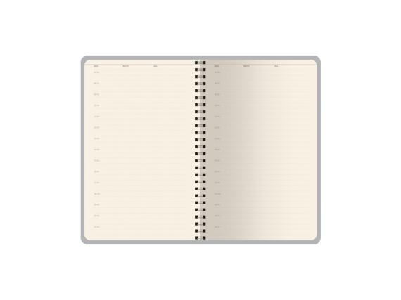 Недатированный ежедневник «Alba» ТМ Bruno Visconti формата А5 сочетает в себе два тренда, набирающих популярность среди современных деловых людей: полускрытый гребень, позволяющий переворачивать листы на 360 градусов, и мягкая гибкая обложка из искусственной кожи высокого качества исполнения. Внутренний блок изготовлен из бежевой бумаги плотностью 70 г/кв.м и содержит 272 страницы, в т.ч. оригинальную справочную информацию на 19 страницах Тиснение (Блинт) на данный товар осуществляется бесплатно. Оплачивается только настройка оборудования в размере 6200 рублей на весь тираж.